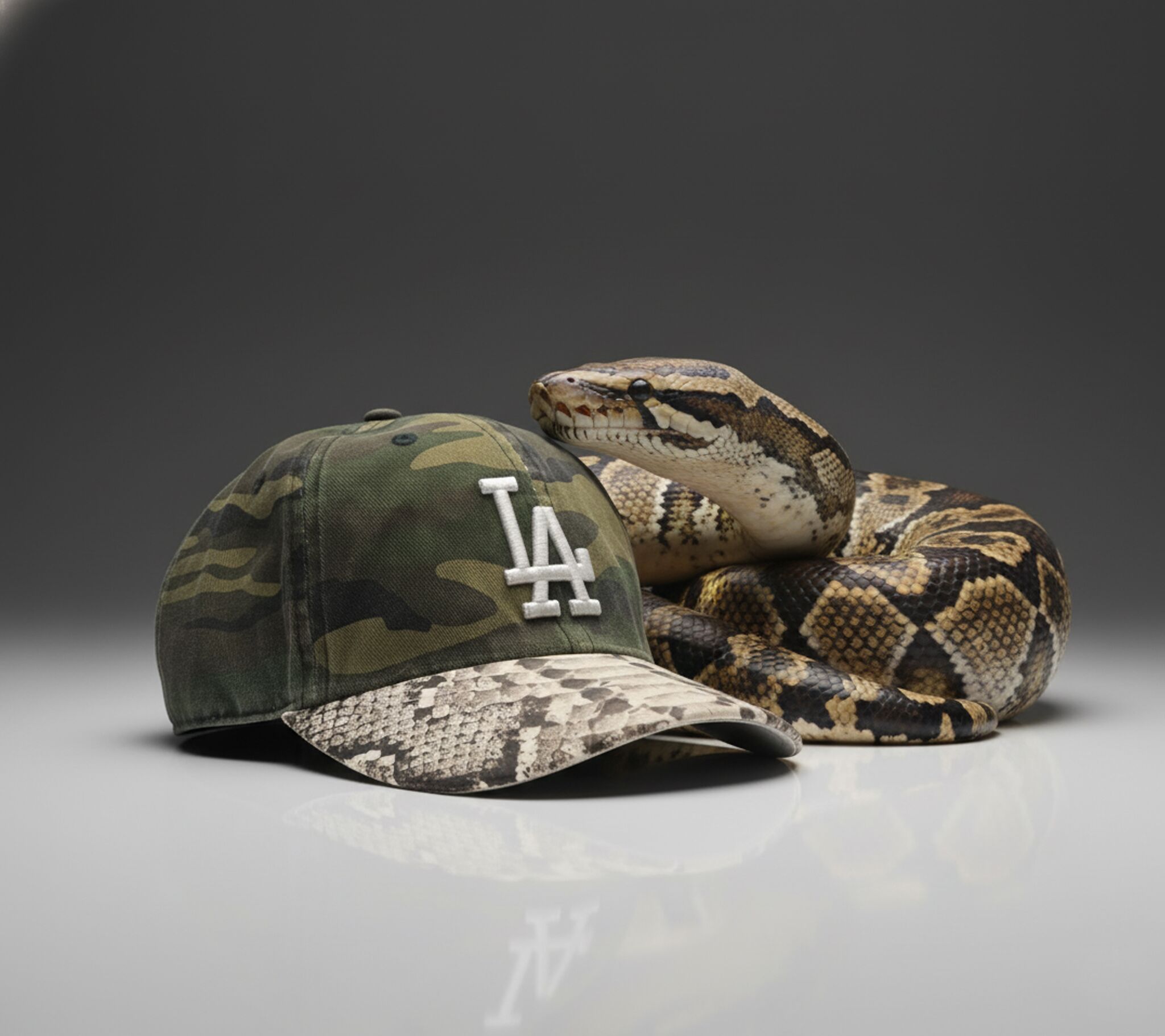Introducing the โ47 Python / LA Camo 90096 Authentic Florida Everglades Burmese Python / Adjustable Cap. A Fusion of Style and Rugged Charm!