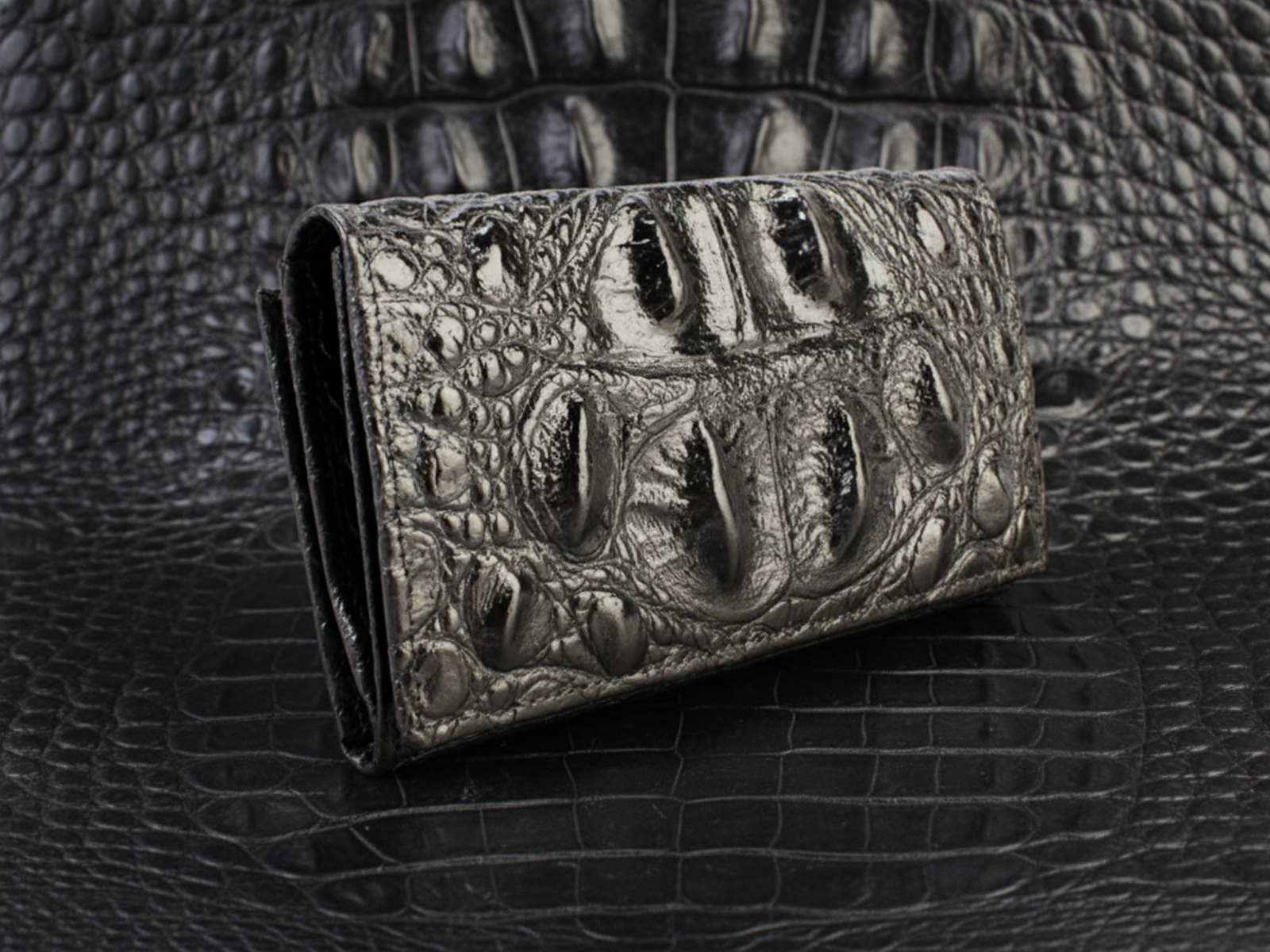 Material: Authentic Crocodile Hornback Color: Black / Dark Brown / Light Brown / Pink Product dimensions: 7” WIDE x 4” HIGH x 1” Deep