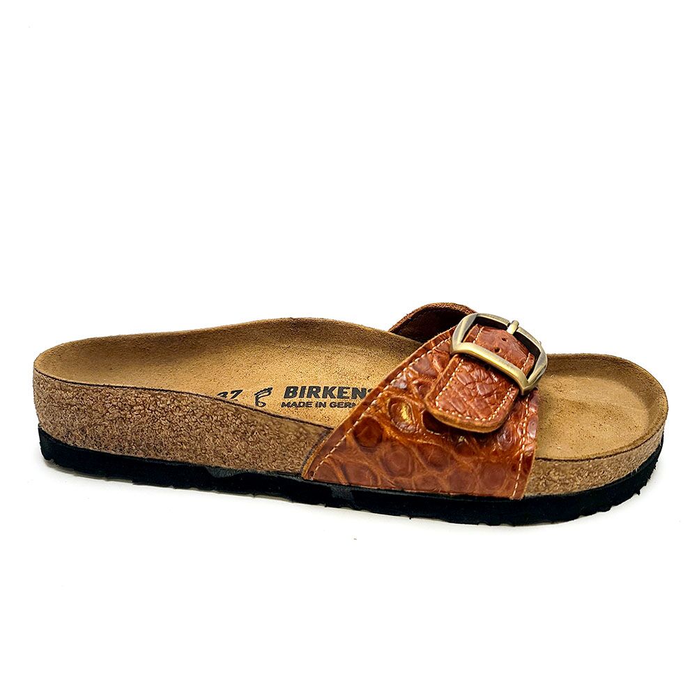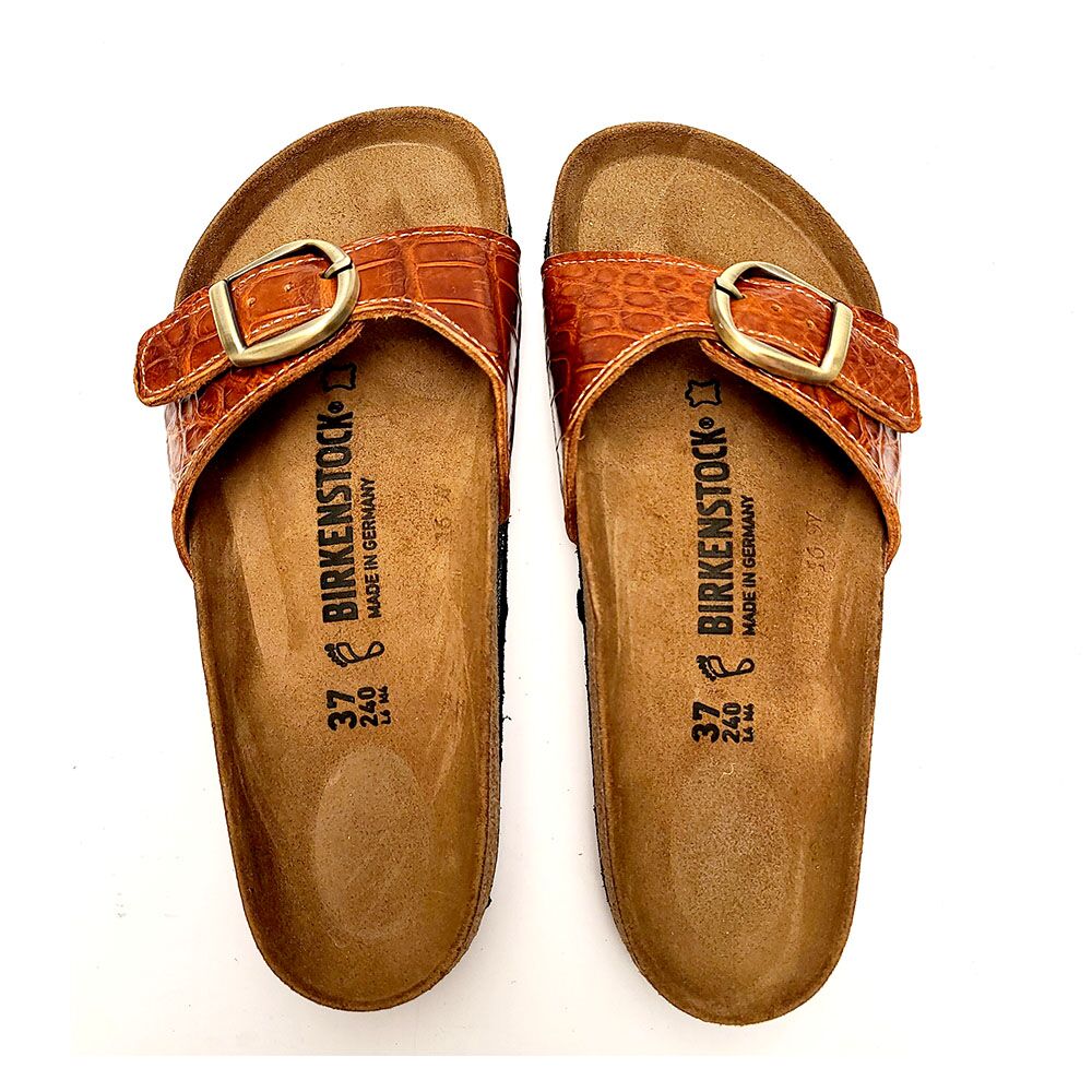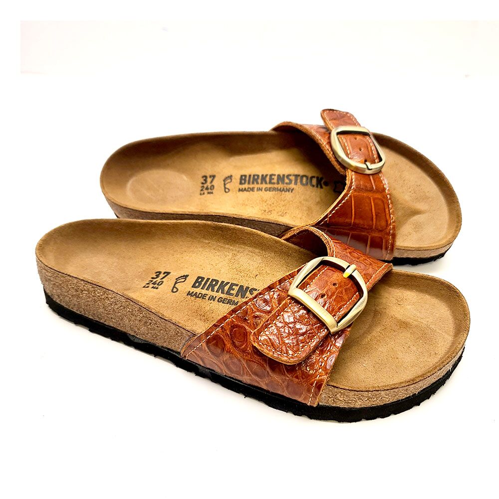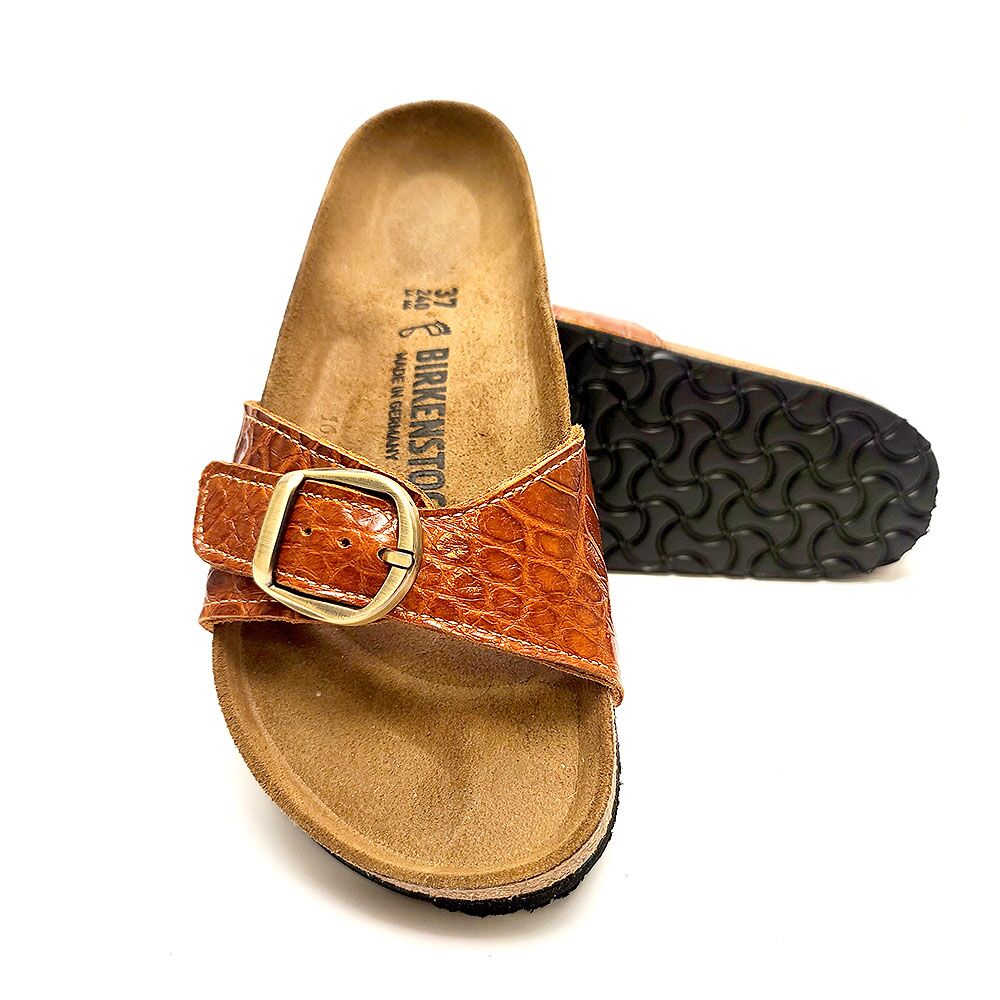 Alligator Madrid Big Buckle Birkenstock’s in Cognac