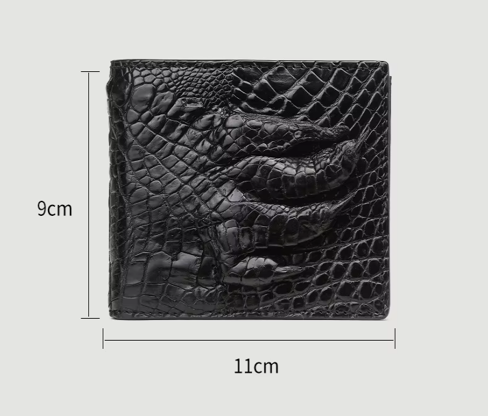 Keep your cards and cash secure in this meticulously crafted crocodile leather wallet—where timeless design meets lasting durability. The bifold layout provides a slim, compact silhouette that fits comfortably in your pocket without sacrificing storage. Inside, you’ll find thoughtfully arranged slots for credit cards, IDs, and folded bills, making it ideal for everyday use or special occasions.