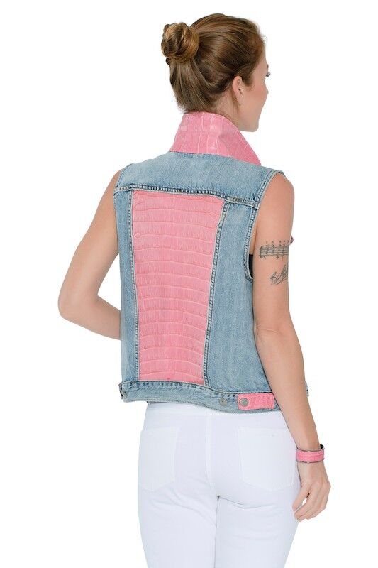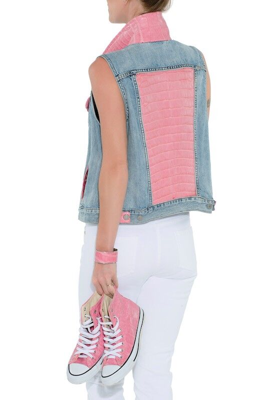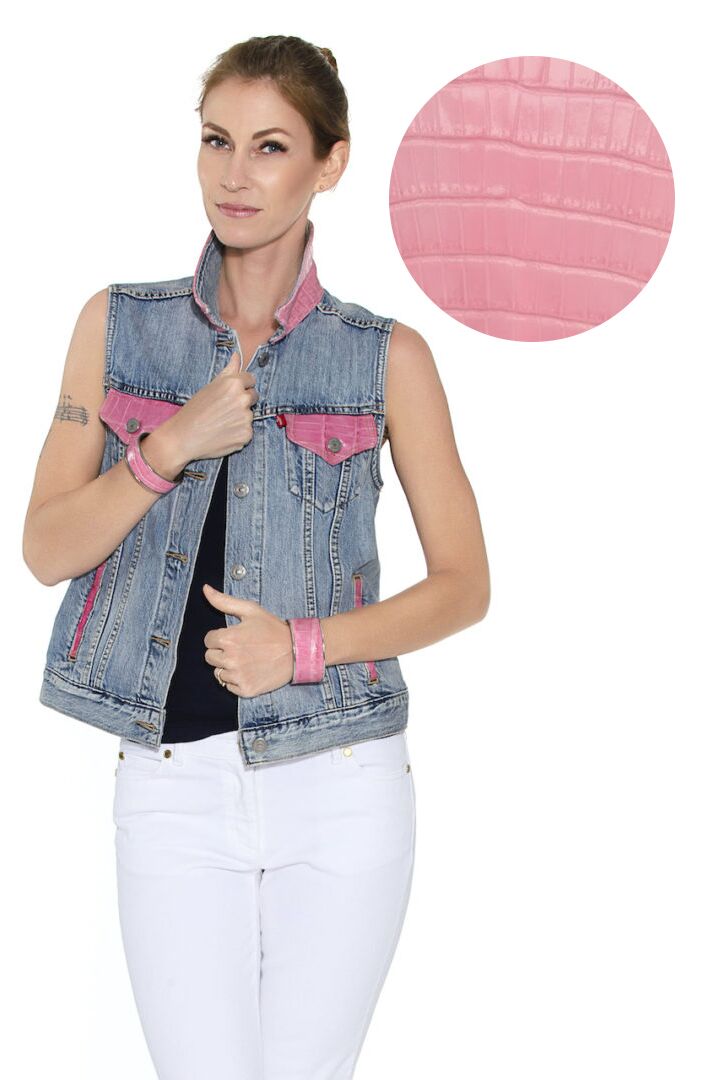 It takes our Tailors a day to re make a Levi Alligator Vest. The Vest in most cases, is deconstructed and taken apart, many seams are opened, the new skin is then carefully inserted in between the seams and then the seams are re sewn. Skin cuts are all Custom and the vest is re made!