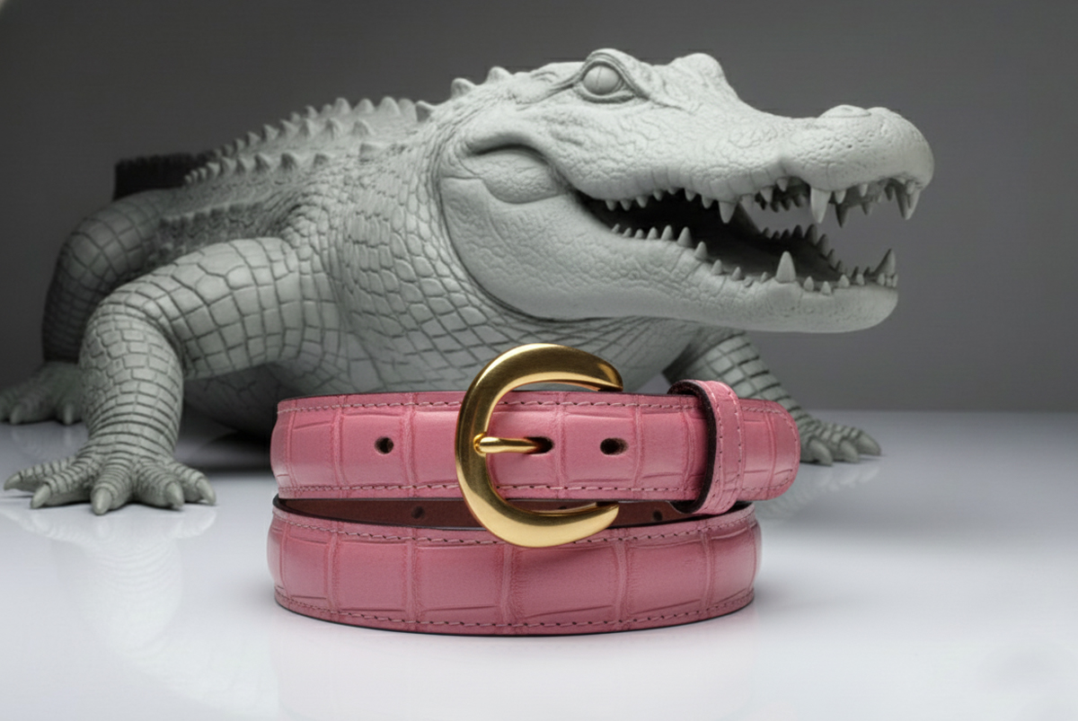 Women’s Genuine Wild Florida Alligator one piece belt in Pink