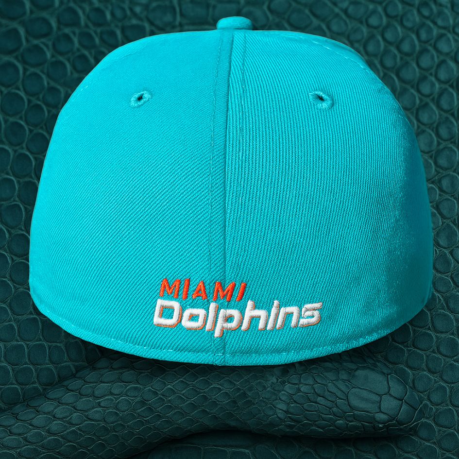 Make a statement with the New Era Python 59FIFTY Fitted Aqua Cap. This one-of-a-kind piece features the official Miami Dolphins logo embroidered on a bold aqua crown, paired with a brim wrapped in genuine python skin. The exotic leather is finished in a vivid orange-to-teal gradient that ties perfectly into the team’s iconic colors. Structured, stylish, and handmade in the USA, this cap delivers an unmatched mix of craftsmanship and South Florida energy. Fitted for impact.
