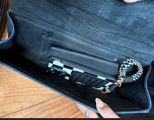 Details: Zip pocket, interior zip pocket, two organizer pockets