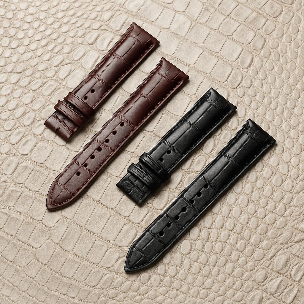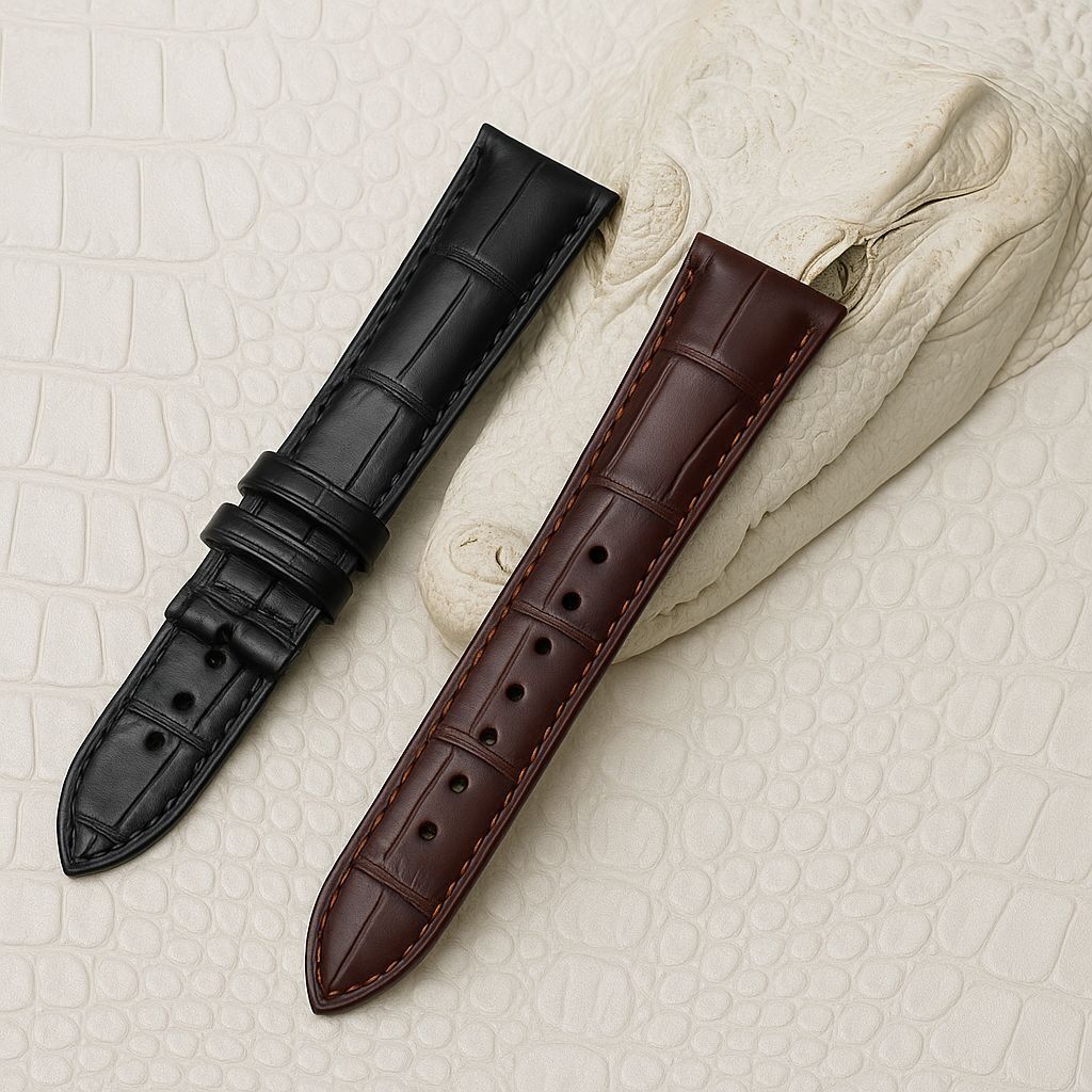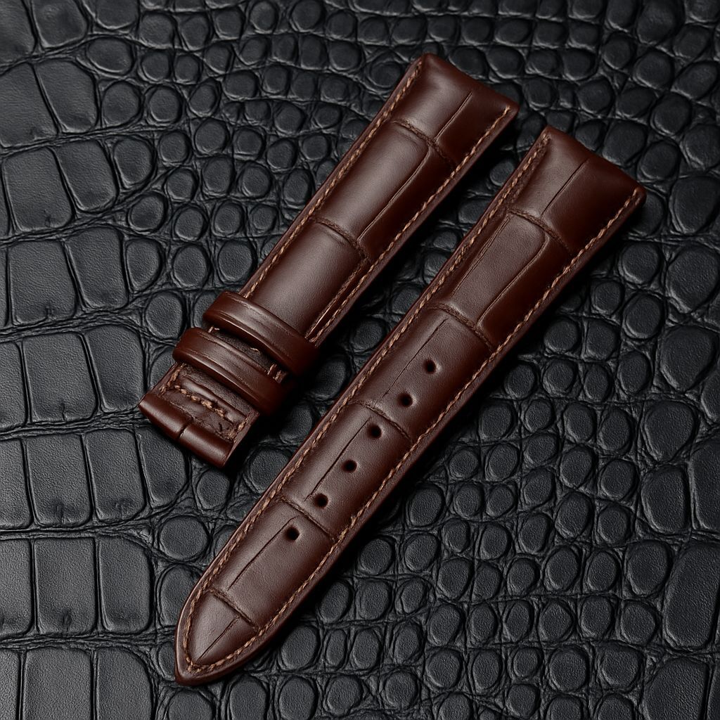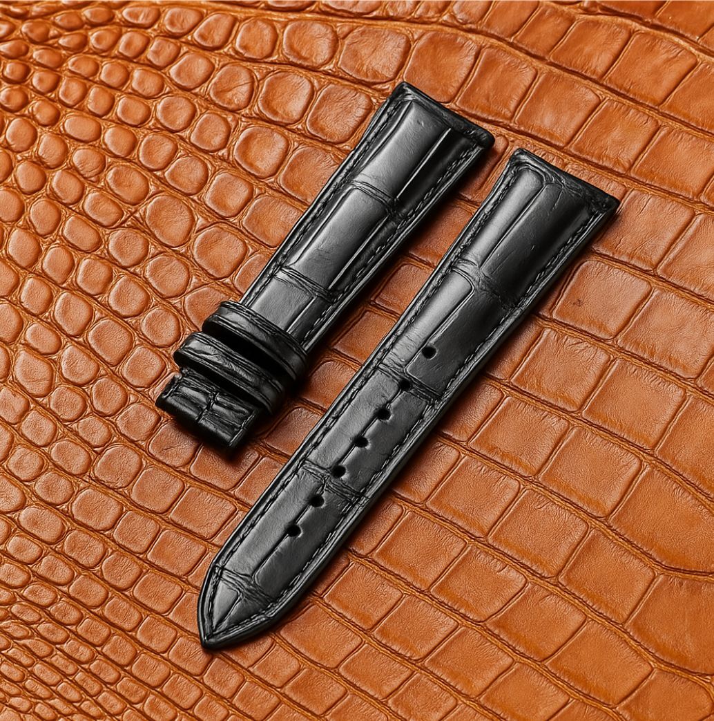 Crafted from high-quality top-grain leather, this strap boasts a striking alligator grain pattern, machine-pressed for a refined finish. The rich vintage black hue exudes sophistication, making it a versatile accessory for any outfit, from casual to formal.